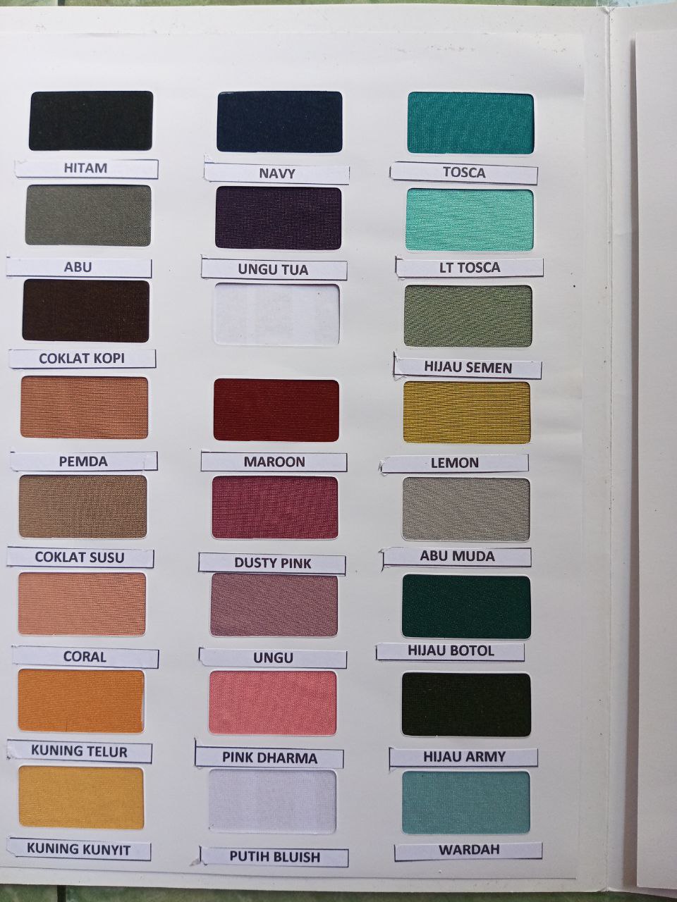 Proses pewarnaan dilakukan dengan standar kualitas tinggi agar warna terlihat solid, merata, dan tidak mudah pudar. Hasilnya tetap terlihat rapi meski digunakan dan dicuci berulang kali.